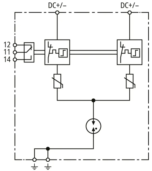 Levezetési áramimpulzus (10/350 µs) [DC+ -> PE/DC- -> PE] (Iimp ) 5 kA