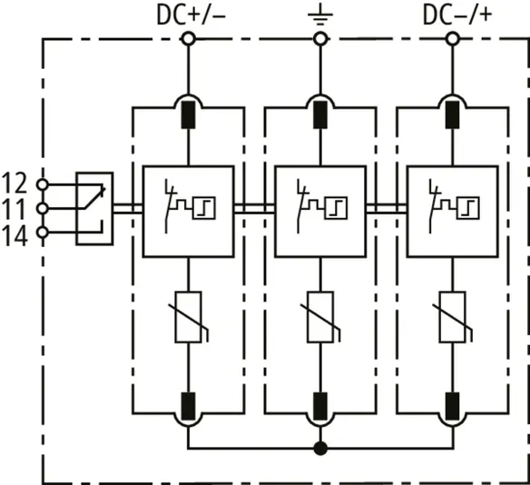 | Névleges levezetési áram (8/20 µs) [(DC+/DC-) --> PE] (In ) | 20 kA |