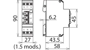 Távjelző érintkezővel, Beépítési méret 1.5 modul