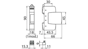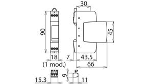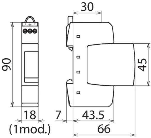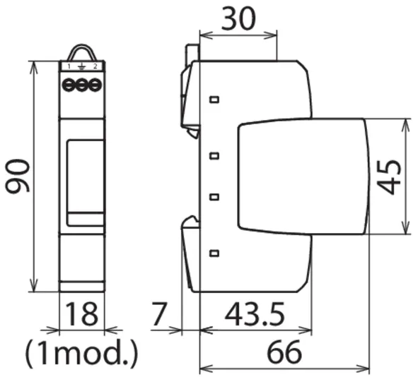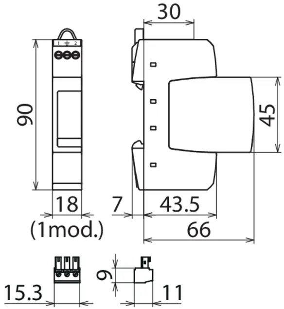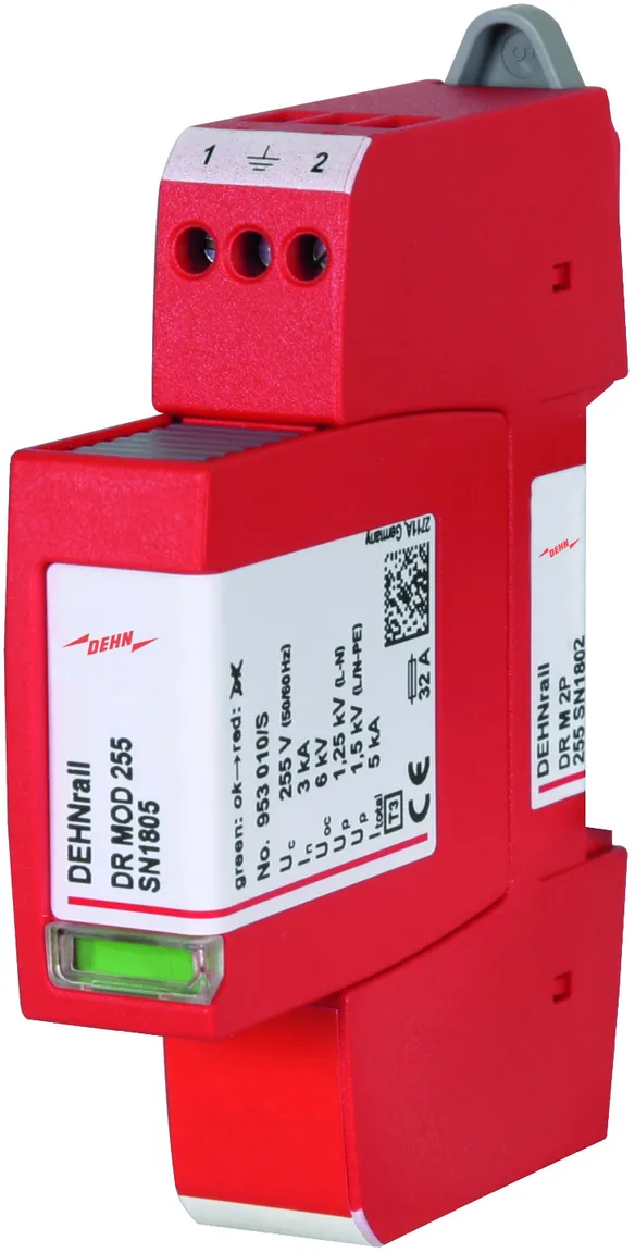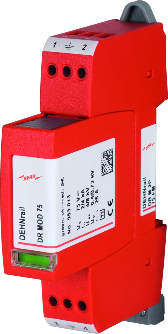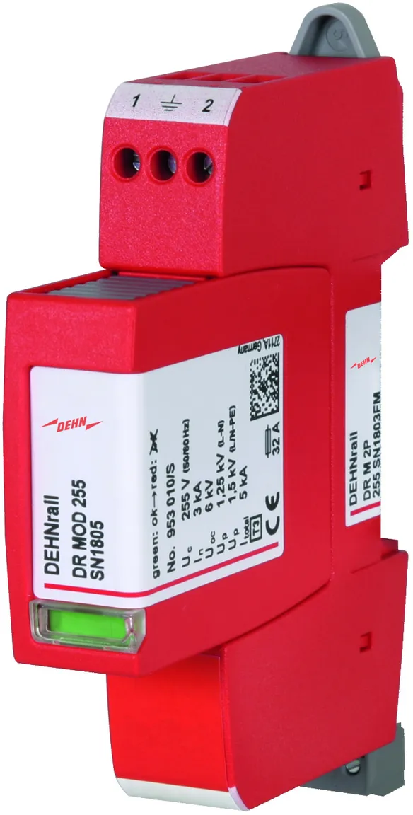 - Kétpólusú túlfeszültségvédelmi készülék mely alapmodulból és dugaszolható védelmi modulból áll