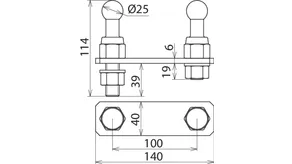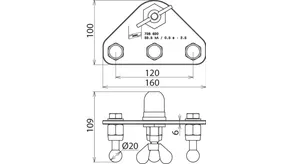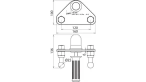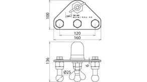 - Kivitel Ø20 mm, Ø25 mm gömbrögzítési pont vagy gyűrűs horonycsavar Ø16 mm számára