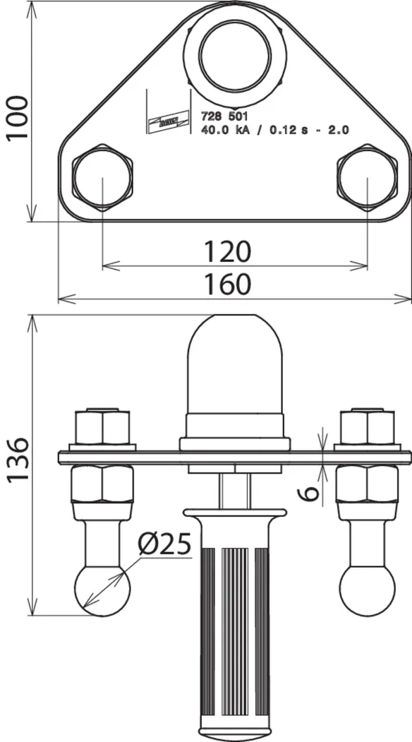 - Egypólusú földelő és rövidrezáró szerkezetek csatlakoztatására felsővezetékoszlopok transzformátorain vagy biztosítótartókon