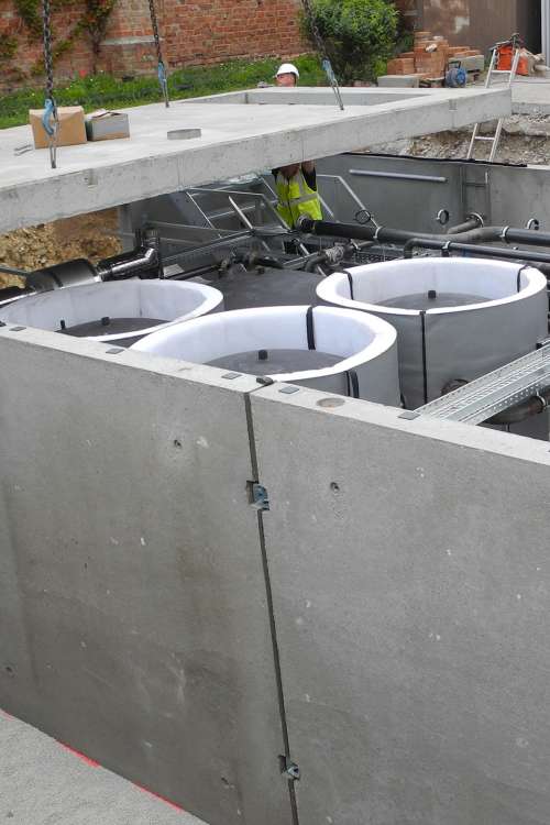 Vorgefertigte Heizzentrale und Hausanschlussraum – das ist der GROUND CUBE. Im unterirdisch verbauten Betonkubus findet die gesamte Haustechnik Platz. Beim Schutz der sensiblen Geräte setzt SISTEMS auf Überspannungsschutz von DEHN.