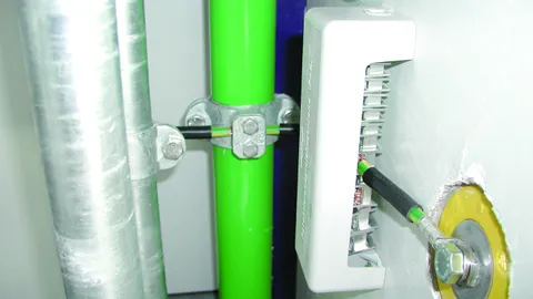 Fascette, barre di terra ed equipotenzialità per l'equipotenzialità di parti esterne conduttrici di elettricità e per l'equipotenzialità antifulmine.