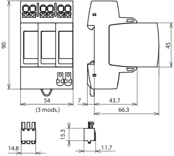 | Nominal discharge current (8/20 µs) [(DC+/DC-) --> PE] (In ) | 15 kA |