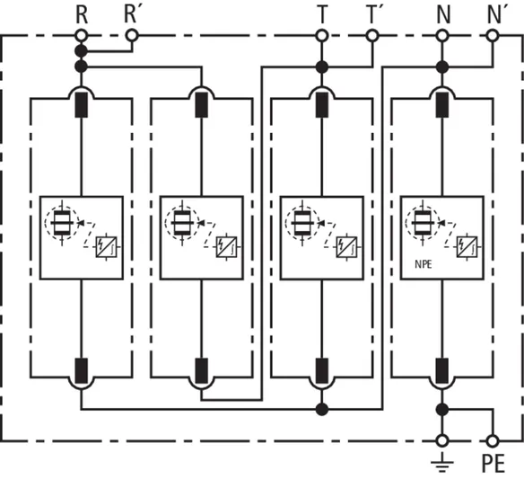 | Lightning impulse current (10/350 µs) [N-PE] (Iimp ) | 100 kA |