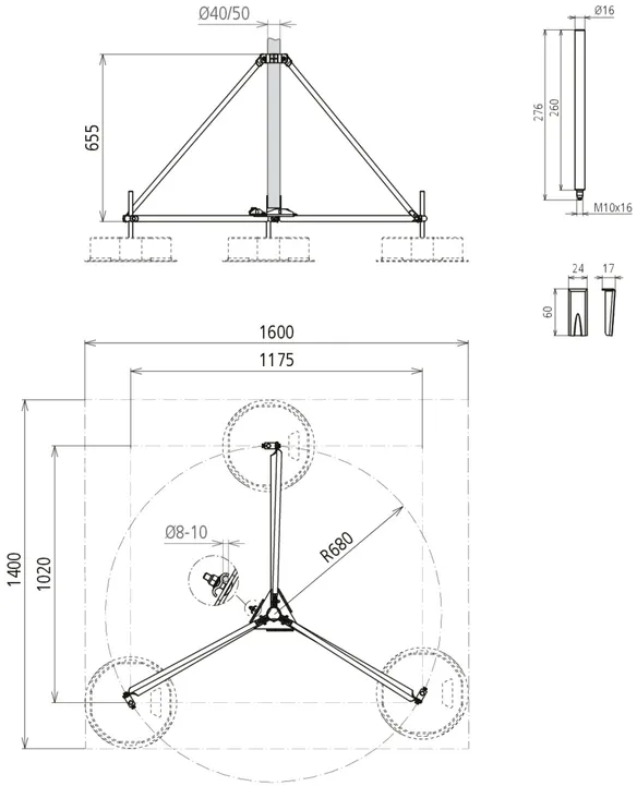For air-termination rods D40, D50 and D60, DEHNiso Combi supporting tubes with air-termination rod / tip or HVI Conductor installed in / on the supporting tube.