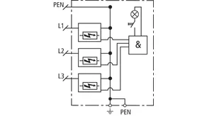 | Lightning impulse current (10/350 µs) [L1+L2+L3-PEN] (Itotal ) | 75 kA |