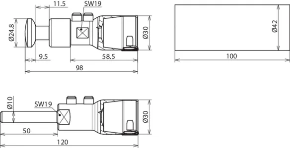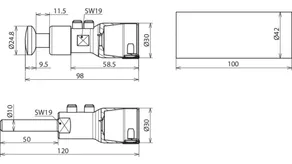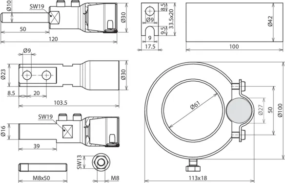 | Connection | Bolt Ø10 mm, L 50 mm with M12 thread with spring washer |