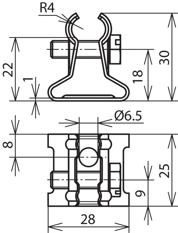 Conductor holder with claw for wall mounting with M6 clamping screw,
