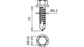 Self-tapping with hexagon head and collar, for connecting bridging brackets, braids or cables, e.g. to the metal capping of the roof parapet (for materials of ≥ 2 mm thickness).