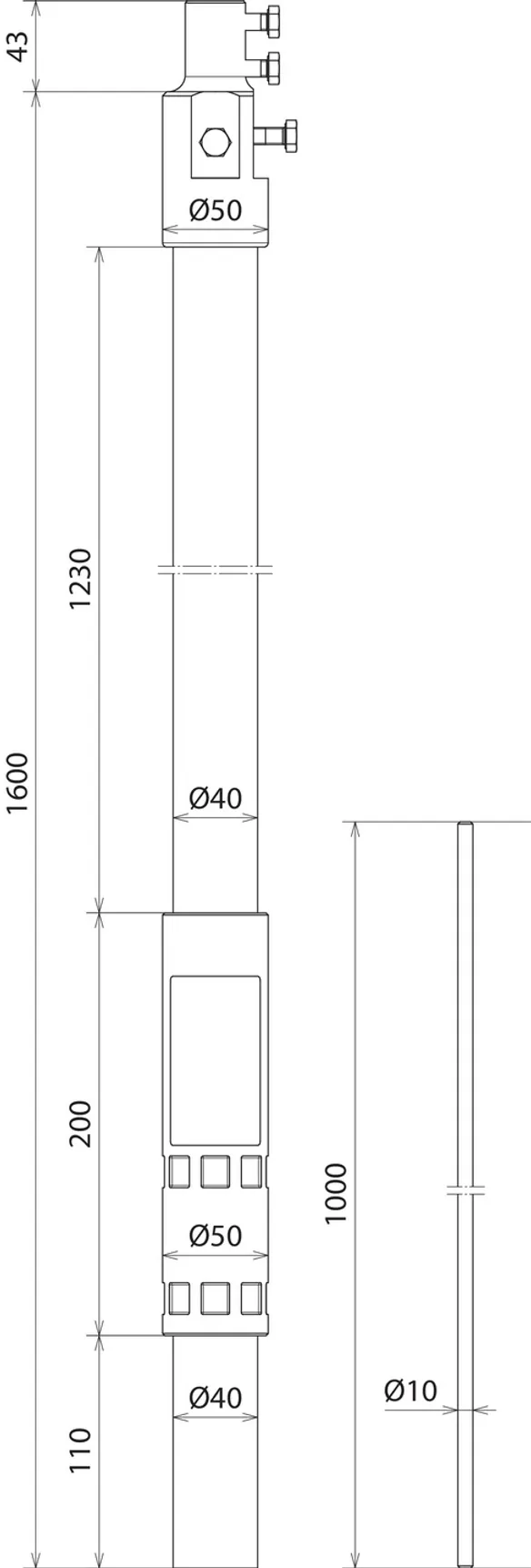 | Length of supporting tube | 1600 mm |