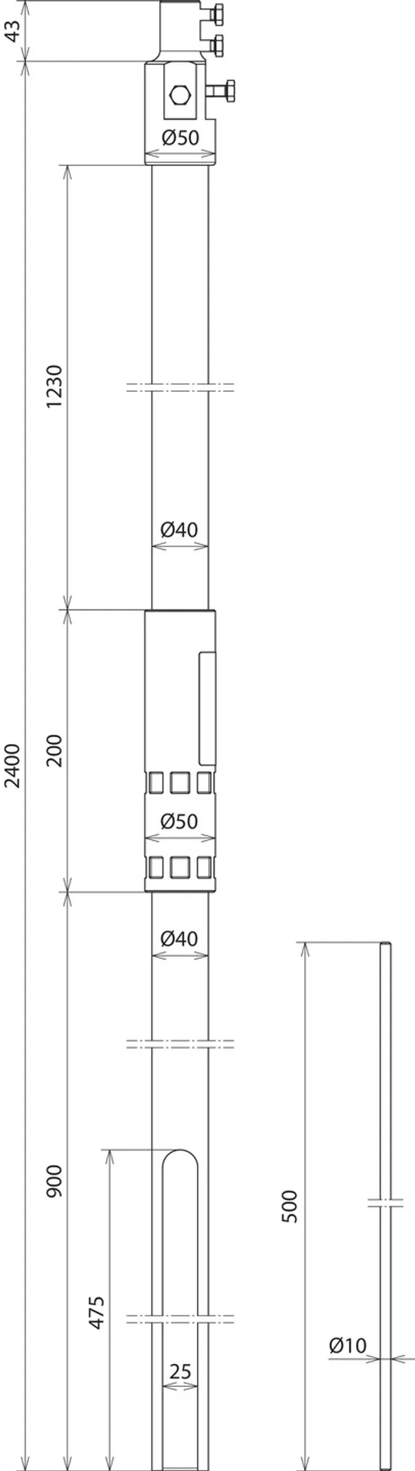 | Length of supporting tube | 2400 mm |