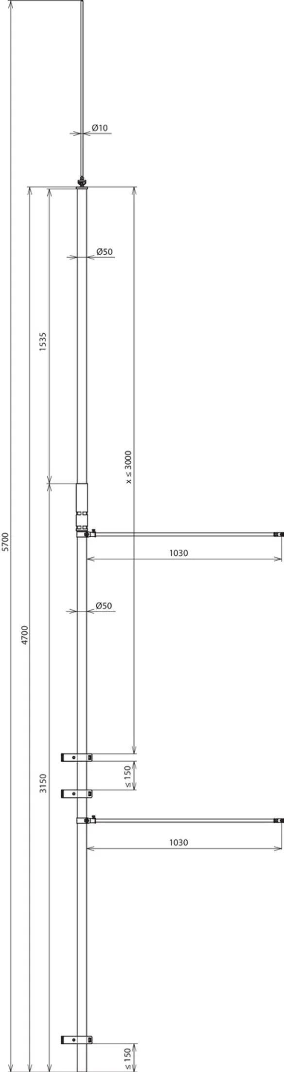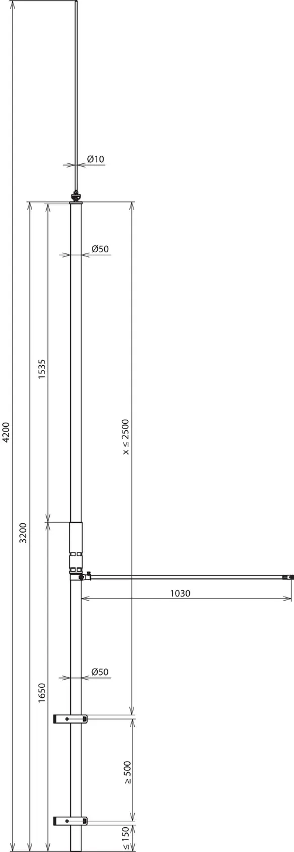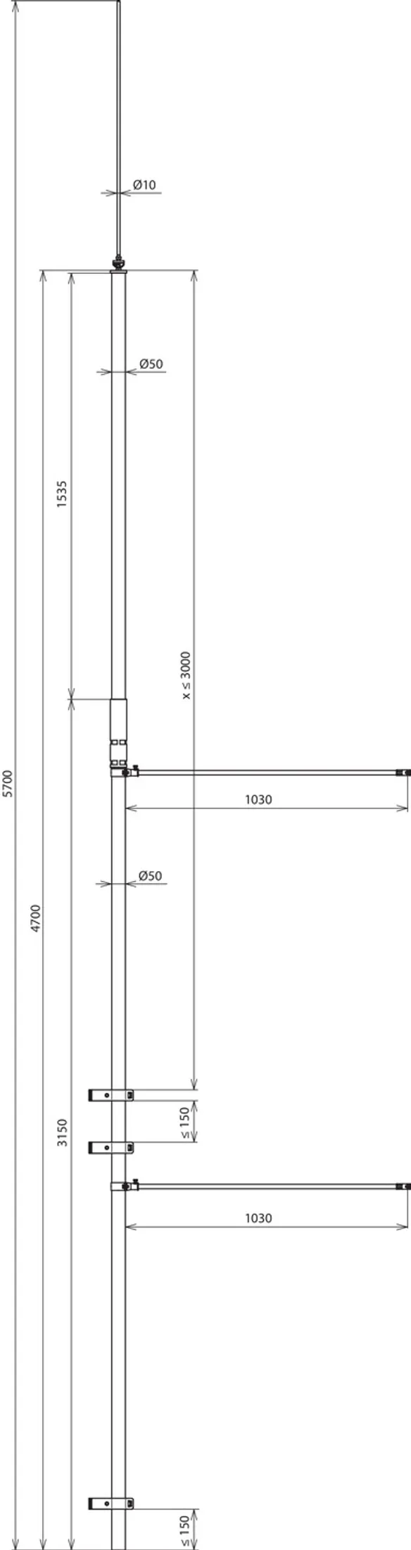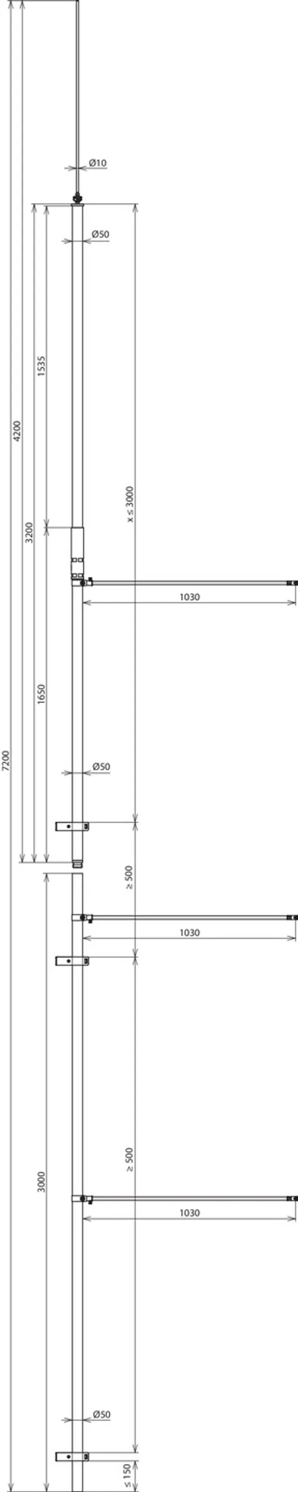 | Max. széllökés sebesség | (Fali szerelés max. szabad hossz 3500 mm, Ø8 mm) 232 km/h |