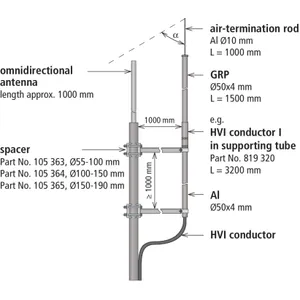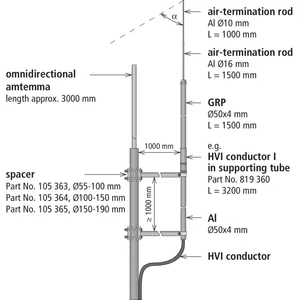 Az omni-antennák számára elszigetelt fogóberendezés telepítése során figyelembe kell venni, hogy egy leválasztott felfogórúd elegendő védőszöggel lefedi a védendő antennát. Emellett azt is figyelembe kell venni, hogy elegendő elválasztási távolságot kell betartani.