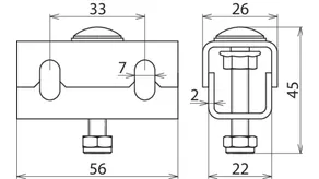 - Rögzítés kör keresztmetszetű csőre DN50 (60 mm)