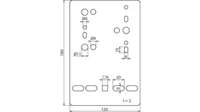| rögzítőfuratokra kábeltálcához | [4x] 9 x 20 / [1x] 9 x 9 mm |