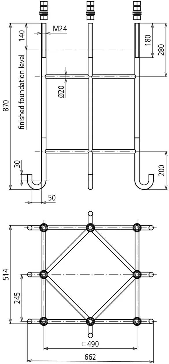 | Menetes csapos kivitel | 8x M24 (490 x 490 mm) |
