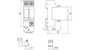 | Védelmi feszültségszint [L-PE]/[N-PE] (UP ) | ≤ 1,5 / ≤ 1,5 kV |