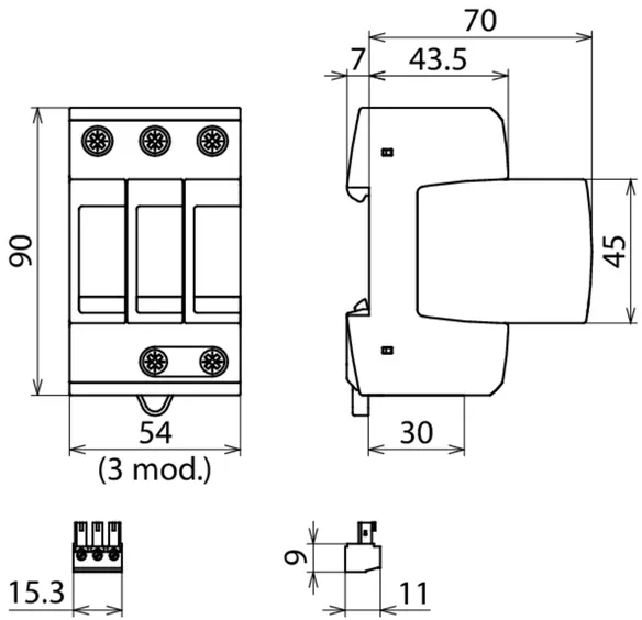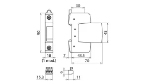 | Védelmi feszültségszint [L-N]/[N-PE] (UP ) | ≤ 1,5 / ≤ 1,5 kV |
