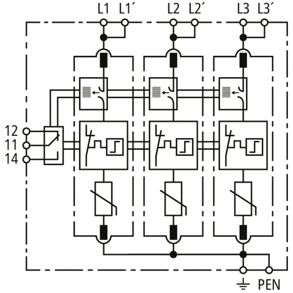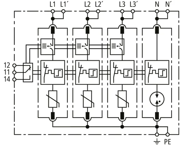 | Maximális levezetési áram (8/20 µs) [N-PE] (Imax ) | 120 kA |
