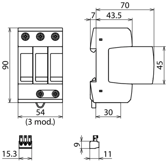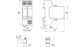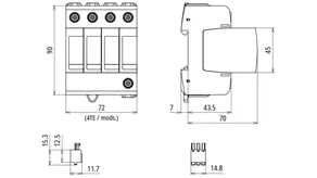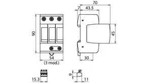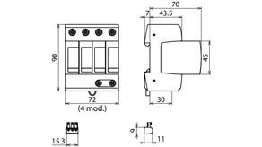 | Védelmi feszültségszint [L-PE]/[N-PE] (UP ) | ≤ 1,5 / ≤ 1,5 kV |