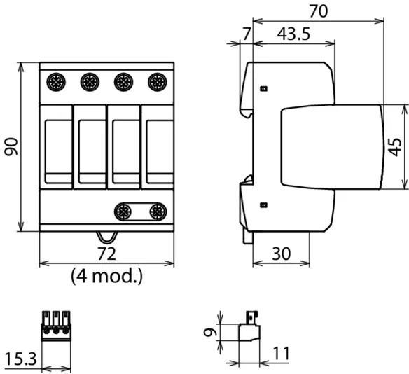| Védelmi feszültségszint [L-N]/[N-PE] (UP ) | ≤ 1,5 / ≤ 1,5 kV |