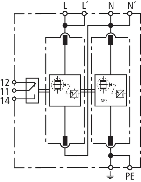 | Levezetési áramimpulzus (10/350 µs) [L, N-PE] (Iimp ) | 25 kA |