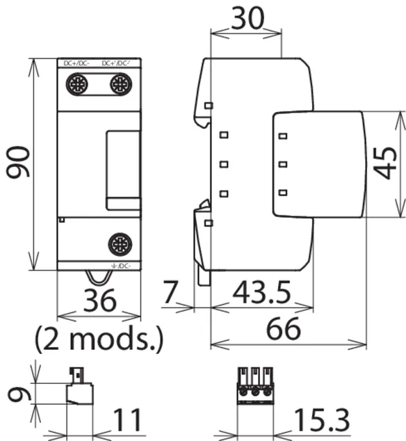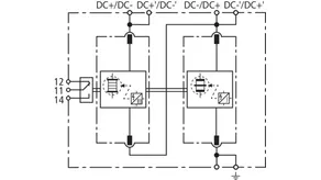 | Levezetési áramimpulzus (10/350 µs) (DC+/DC- -> DC-/DC+) / (DC-/DC+ -> 9) (Iimp ) | 25 / 50 kA |