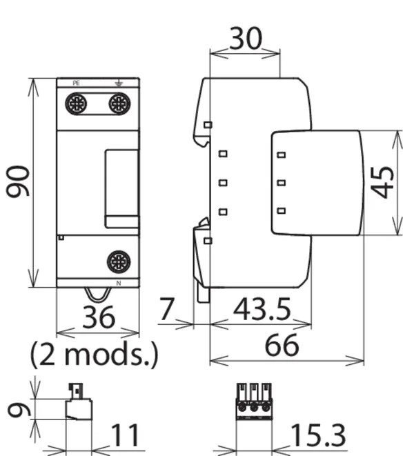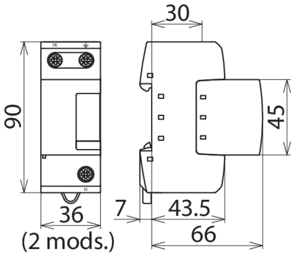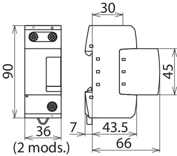 | SPD típus/osztály az MSZ EN 61643-11 / ... IEC 61643-11 alapján | 1.típus + 2.típus/ I.osztály + II.osztály |