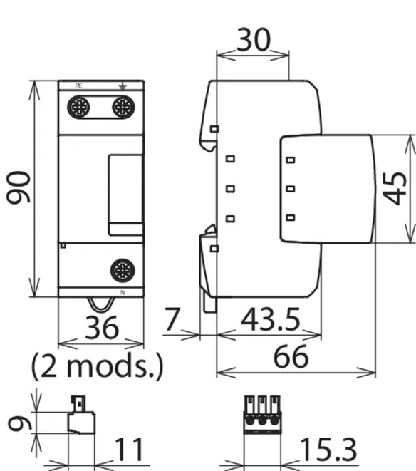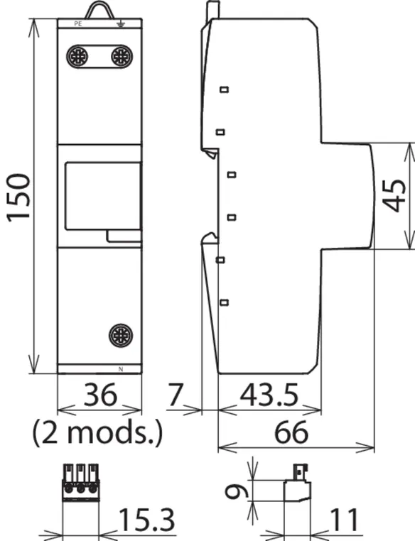 - Összegáram-levezető N nullavezető és PE védőföldvezető között, melyet kifejezetten a TT rendszerek 3+1 illetve 1+1 kapcsolásokhoz terveztek az MSZ HD 60364-5-534 szabvány szerint