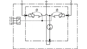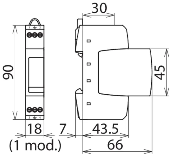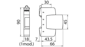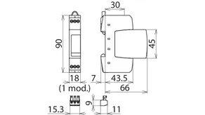 - Kétpólusú túlfeszültségvédelmi készülék mely alapmodulból és dugaszolható védelmi modulból áll