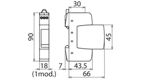 - Keskeny (moduláris) kivitel a DIN 43880 szabvány szerint