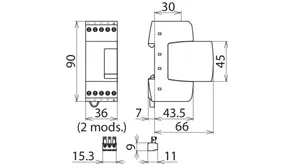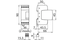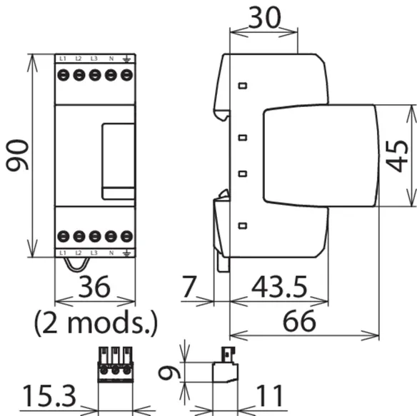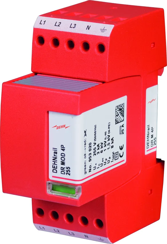 - Négypólusú túlfeszültség-korlátozó, mely alapmodulból és dugaszolható védőmodulból áll