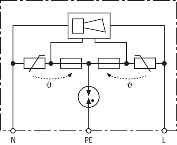 - Kétpólusú túlfeszültségvédelem felügyeleti eszközzel és leválasztó eszközzel