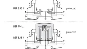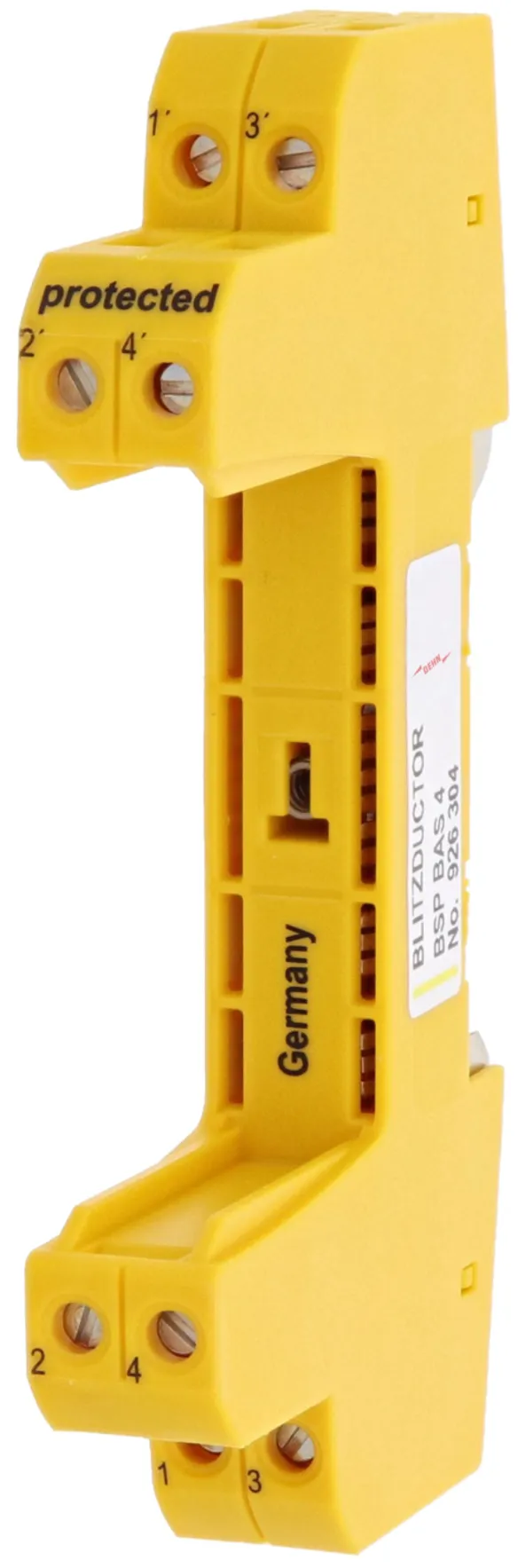 A BLITZDUCTOR SP alapmodulja egy nagyon helytakarékos és univerzális négypólusú átviteli egység mely megszakítja az áramkört amennyiben a dugaszolható védelmi modult eltávolítjuk. Az aljzat a készülék talpán keresztül, kalapsínről kapja a földelést. Mivelhogy az alapmodulban nincs védelmi áramkör, a karbantartást a védelmi modulok cseréjével lehet elvégezni.
