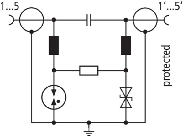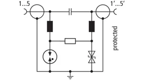 Ötszörös túlfeszültség-korlátozó 75 Ohm-os antennarendszerek számára. Speciális kivitel SAT-antennaelosztók és multikapcsolók számára. A levezető megfelel az A osztály árnyékolási követelményeinek az EN 50083-2 szerint.