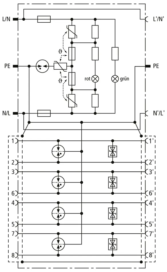 - Végberendezés energia- és adatoldalának kombinált túlfeszültségvédelme