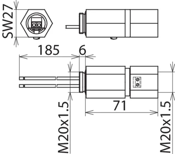 | Szerelés terep- / eszközoldal | M20 x 1,5 külső menet |