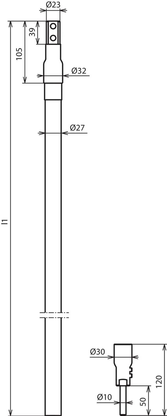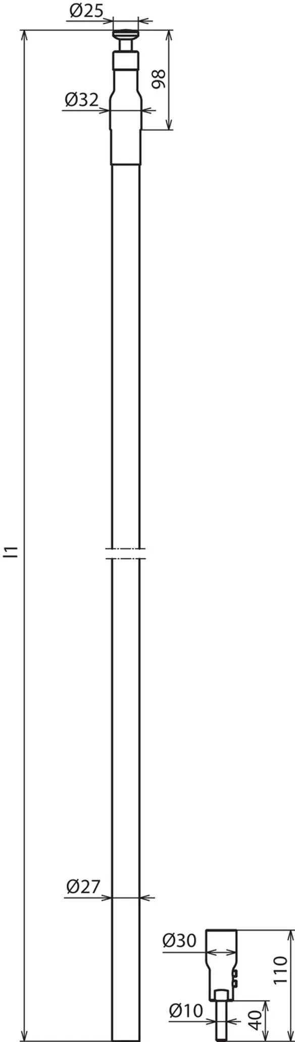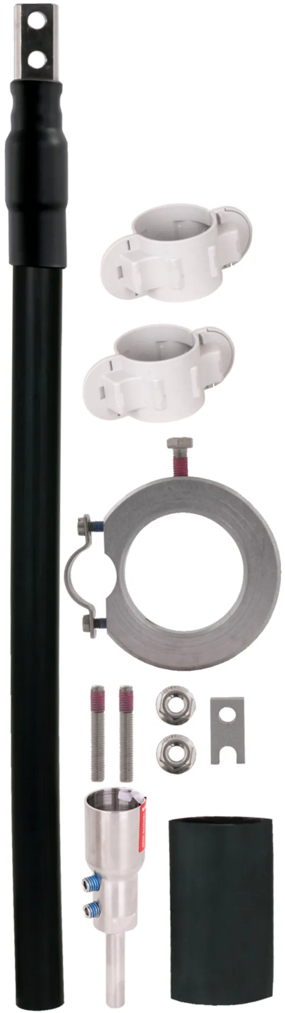 Csatlakoztató készlet HVI power vezeték számára HVI power támasztócsőre GFK / Al, ami csatlakozóelemekből, menetes csapokból, csatlakozóelemből, zsugorcsőből, kábelkötözőből és rögzítőgyűrűből áll hasított vezetéktartóval (Ø27 mm) a végelzáróhoz (kábelkötözővel együtt).