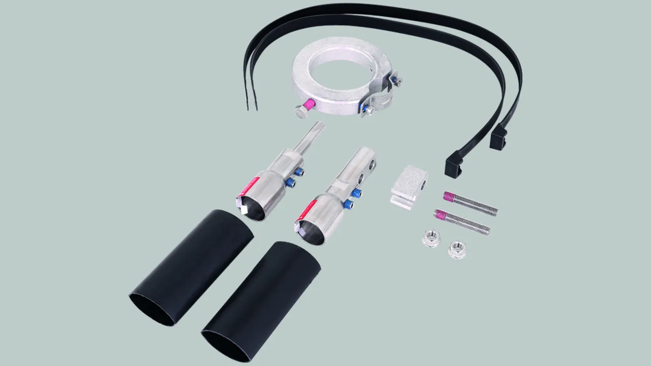 Csatlakozóelemek a HVI power long vezeték lezárásához mindkét végén, a vezeték végelzárójának létrehozásához a támasztócsőben (fejrész) és csatlakozóelem a külső villámvédelem vagy a földelőrendszer további elemeire csatlakozáshoz (két zsugortömlővel együtt).