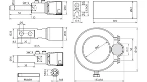 | Csatlakozó | Csap Ø10 mm, L 50 mm M12 menettel rugós alátéttel |