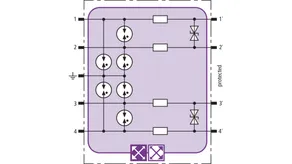 Helytakarékos túlfeszültség-védőmodul RFID-LifeCheck-kel akár négy földpotenciálmentes egyedi ér védelmére közös referenciapotenciállal gyújtószikramentes mérőáramköröknél, teljesítve a FISCO követelményeit. ATEX. Szigetelési szilárdság > 500 V ér-föld.
