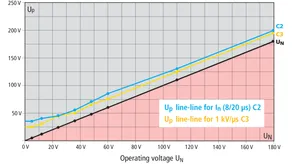 | Legnagyobb tartós üzemi feszültség DC (UC ) | 180 V |