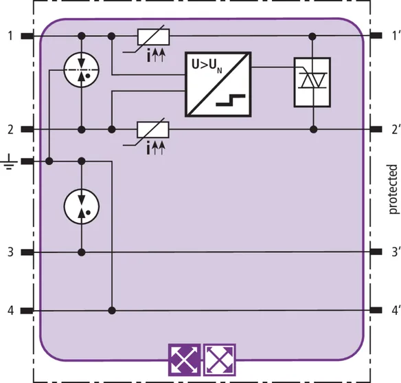 Helytakarékos kombinált védőmodul actiVsense-technológiával és RFID-LifeCheck-kel 1 érpár védelmére, választhatóan közvetlen vagy közvetett árnyékolásföldeléssel. Felismeri automatikusan a hasznos jel alkalmazott üzemi feszültségét és a védelmi szintet optimálisan ehhez illeszti.