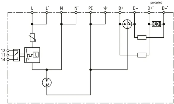 | Maximális levezetési áram (8/20 µs) [N-PE] (Imax ) | 40 kA |