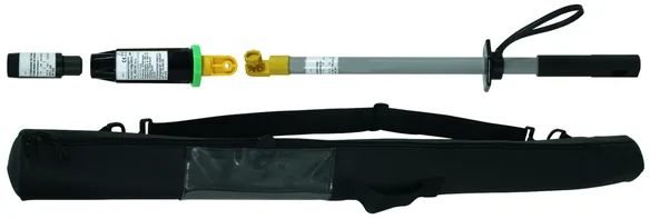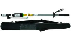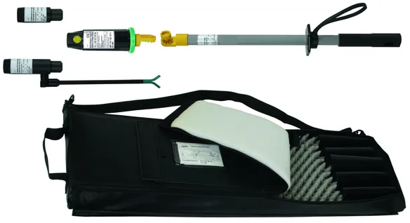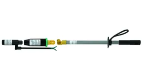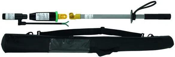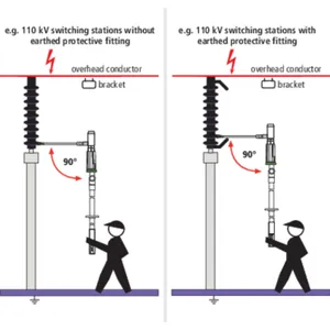 Az ASP érintkezés nélküli feszültségkémlelőt az „L” kategóriás e-mezőszenzorral úgy kell a zöld gyűrűvel az utolsó, földelt védőszerelvényre csatlakoztatni, hogy az e-mezőszenzor a másik szigetelővégre rögzített vezetősodrony irányába mutasson.