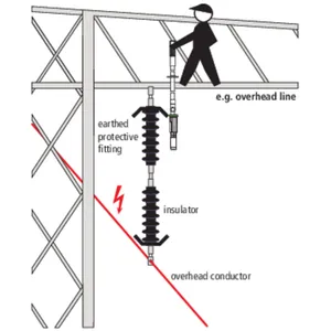 Amennyiben földoldali védőszerelvény rendelkezésre áll, akkor az oldalkart a legközelebbi szigetelőtárcsára kell kötni a védőszerelvény felett.