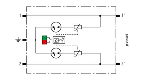Helytakarékos, moduláris kombinált védelmi készülék 6 mm-es szélességgel, rugós csatlakozástechnikával, állapotjelzéssel, két közös referenciapotenciálú egyedi ér, illetve aszimmetrikus interfésszel rendelkező, nagyfrekvenciás átviteli vonalak védelmére. Jelmegszakítással karbantartási célokra.