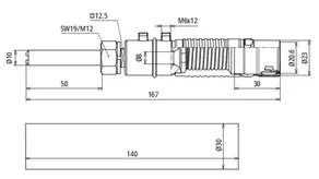 | Csatlakozó | Csap Ø10 mm, L 50 mm M12 menettel rugós alátéttel |